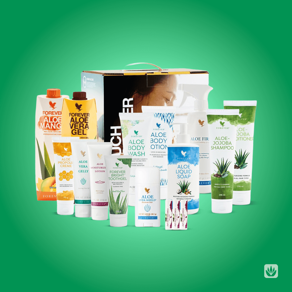 - Aloe Lips® (2-pack), Forever Bright® Toothgel (2-pack), Aloe First® Spray, Aloe Propolis Creme, Aloe Vera Gelly, Aloe Moisturizing Lotion, Aloe Body Wash, Forever Aloe Scrub®, Aloe Avocado Face & Body Soap (2-pack), Aloe Liquid Soap, Aloe-Joba Shampoo, Aloe-Jojoba Conditioner.